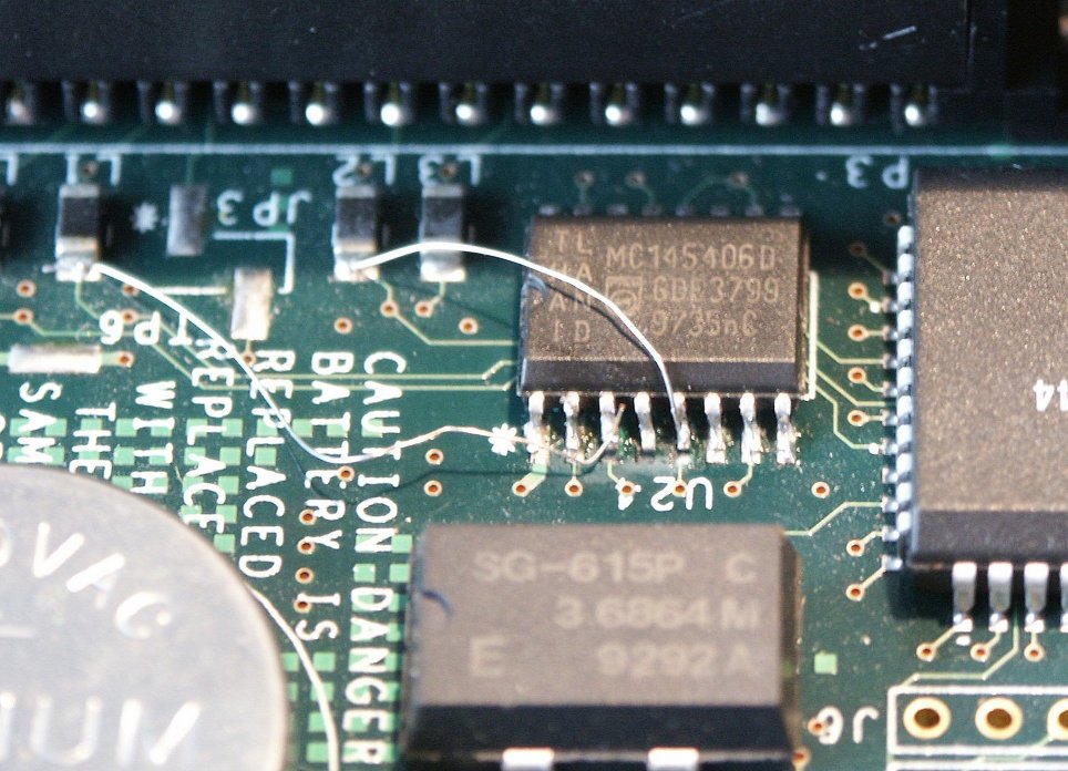 Bridging the broken mainboard leads by wires (7200-I/O).