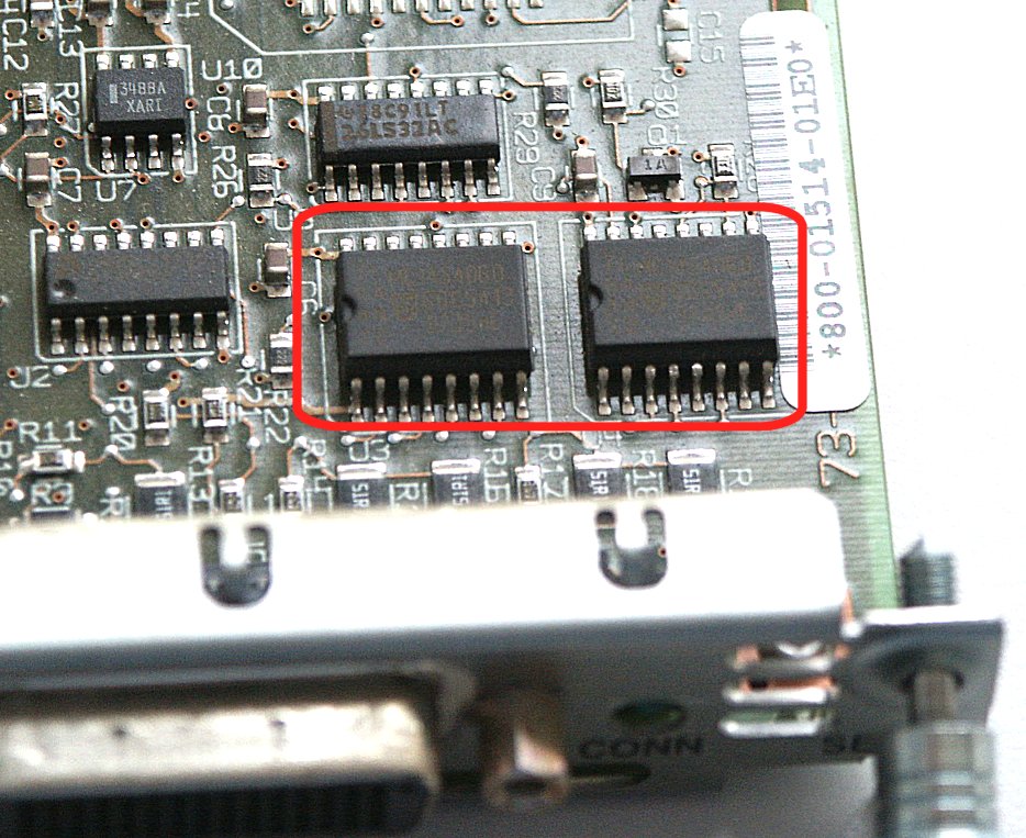First thing you need is are the replacement chip(s), you can ether buy them if you find a source, or you can find a donor router and get the chips from there, which was our choice. What we found out is that all 2500, 2600, 7200 (I/O Boards) and 7500 (RSP Boards) routers use those chips to drive the console and aux ports, we also think, that most probably 3600 series does as well.In addition to that we discovered, that all "communication" serial ports with DB60 connector are equipped with TWO of those chips per port. So, wic-1t has 2 of such chips (But not WIC-2T, they use other chips), PA-4T: 8, 7500 Fast Serial IP: 16 and 2501,2502,2503,2504 routers 6 (4 for serial ports and 2 for aux and console). And last but not the least: you could sacrifice some of the router functionality like aux or serial ports and use their chips to repair console.